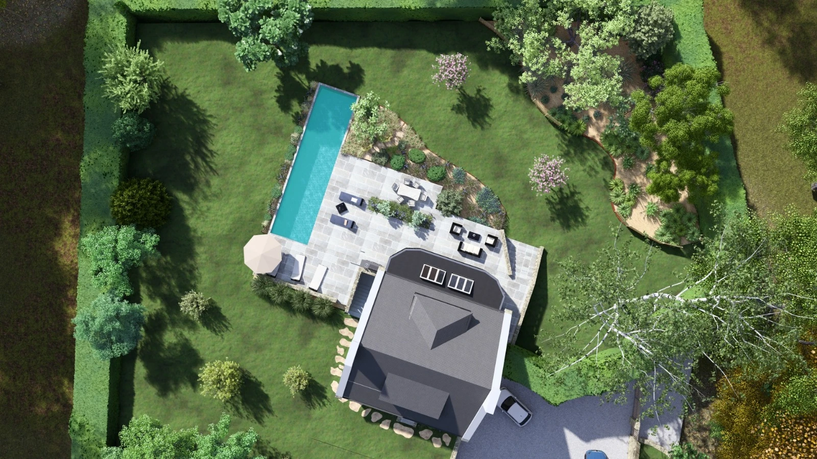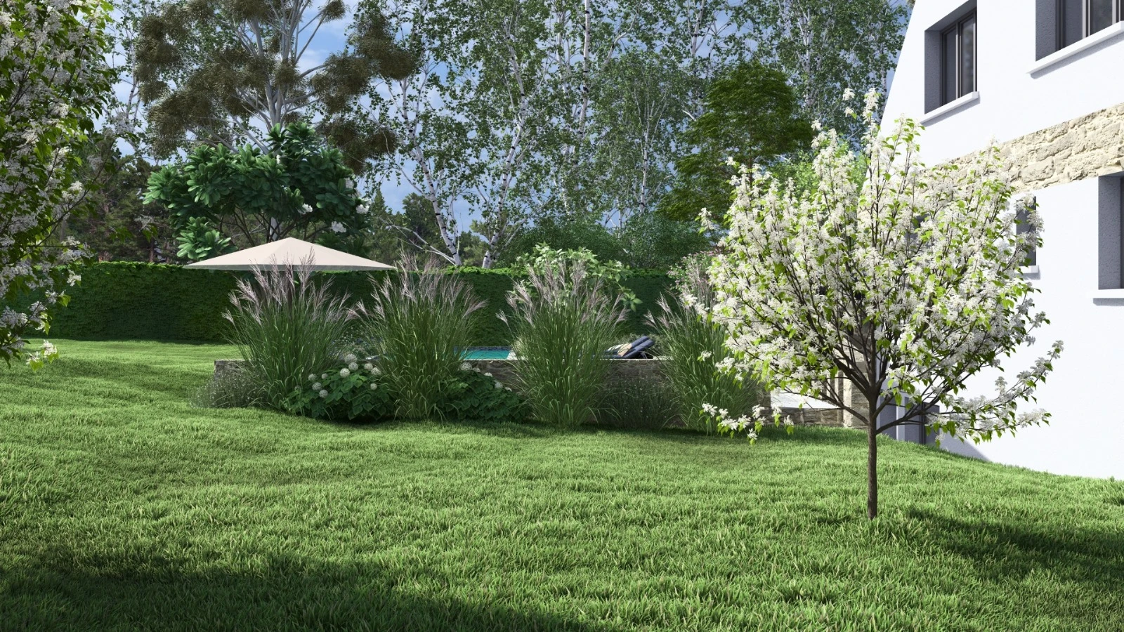 Suite à la restauration complète de la maison, réaménagement intégral du jardin avec création d’une piscine, d’une grande terrasse dédiée aux espaces repas et détente, intégrée dans un environnement végétalisé pour préserver l’intimité. L’ensemble du projet s’organise autour d’un vaste jardin paysager, pensé pour offrir des espaces ouverts et sécurisés pour les enfants, tout en conservant une ambiance naturelle et équilibrée.